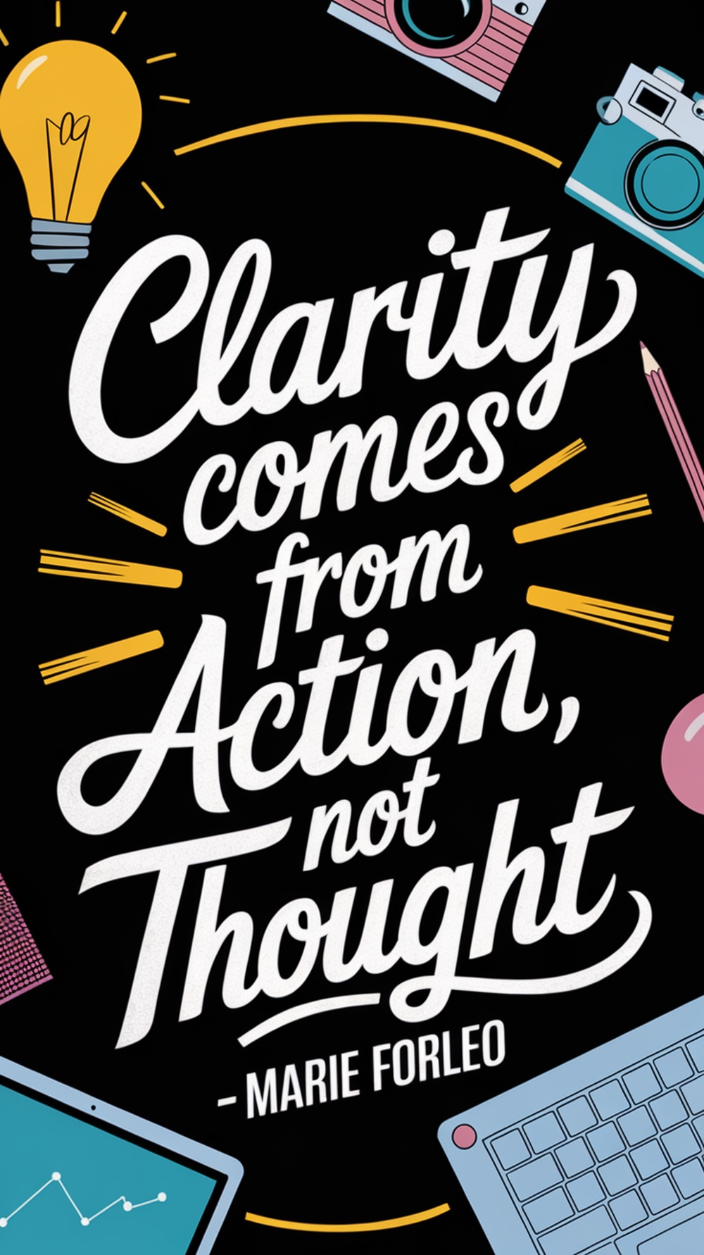 Clarity Comes from Action, Not Thought – Marie ForleoMarie Forleo, an influential entrepreneur and motivational coach, delivered a powerful truth in just seven words: “Clarity comes from action, not thought.” At first glance, it seems counterintuitive. Isn’t thinking supposed to give us clarity? Aren’t we told to plan carefully, weigh our options, and "sleep on it" before making a move? While contemplation has its place, Forleo’s quote points to a truth many of us learn only through experience: Overthinking rarely leads to clarity. Doing does. In other words, action—not over-analysis—is the true compass to finding direction, purpose, and confidence. This article explores the deeper meaning behind this quote, why action generates clarity, and how to apply it in real life. We'll also offer 10 Pinterest SEO keyword phrases to help share this powerful message with others who need to hear it. The Problem with OverthinkingWe’ve all been there. Stuck in our heads. Replaying different outcomes. Asking “What if?” a hundred times. While it may feel like you’re being productive, overthinking can become a trap that keeps you from making any progress at all. Psychologists call this analysis paralysis—the state where you’re so overwhelmed by choices or possible outcomes that you take no action at all. Fear of making the wrong decision prevents you from making any decision. And ironically, in trying to find the “perfect” answer, you miss out on the best teacher of all: experience. Thought vs. Action: The Real Source of ClarityIt’s easy to mistake thinking for problem-solving. But they aren’t the same. Thinking is passive. Action is active. And only action reveals the unknown. Let’s say you’re unsure whether to start a blog, change careers, or launch a new business. You can read every article, watch every YouTube video, ask for advice, journal your thoughts—but none of that will provide the same insight as actually trying it. Starting the blog. Taking the course. Applying for the job. Why? Because action brings feedback. Action creates momentum. Action reveals what works and what doesn’t. Thought alone keeps things in theory. Only action brings reality into focus. How Action Generates Clarity1. Feedback Creates LearningWhen you take action, you get real-world results—positive or negative. Every step gives you data: Did that feel right? Did it produce results? Was that as hard as I thought? You can adjust from there. 2. You Discover What You Don't WantSometimes clarity isn’t about finding what’s right—it’s about eliminating what’s wrong. Action helps you rule things out quickly so you don’t waste time wondering. 3. Confidence GrowsClarity and confidence go hand in hand. When you move forward, even in uncertainty, you develop self-trust. You learn that you can handle things as they come. And this confidence is what makes the next step easier. 4. New Paths EmergeOften, the most helpful ideas and breakthroughs don’t appear until you’re already in motion. You can’t plan for them in your head—they reveal themselves through the process. Real-Life ExamplesThe Aspiring WriterSomeone dreams of writing a book but spends years thinking about the perfect plot, the perfect title, the perfect time. Another person simply starts writing—bad drafts and all. Who gets closer to clarity? The one taking action. The Career ChangerA person stuck in a job they hate keeps thinking about switching fields but is paralyzed by uncertainty. Another takes a weekend course, volunteers, or tries freelance gigs in their target field. Soon, they either confirm it’s what they want—or they realize it’s not. Either way, they’ve moved forward. The New EntrepreneurSomeone wants to open an Etsy shop but keeps researching competitors and worrying about whether it will work. Another person just launches with a few products and sees what happens. Even if they fail, they now have knowledge that no book or mentor could have given them. How to Take Action When You Don’t Feel ReadyTaking action doesn’t mean taking huge leaps. It means any step forward. Here’s how to do it even when you feel stuck or scared: 1. Break It DownClarity rarely comes from giant leaps. Instead, ask: What’s the smallest step I can take right now? Maybe it’s signing up for a free course, writing a single blog post, or making a list of people to contact. 2. Set a 10-Minute TimerTell yourself you’ll work on your goal for just 10 minutes. Most times, starting is the hardest part—and once you’re in it, you’ll keep going. 3. Test and LearnTreat everything as an experiment. Experiments don’t fail—they teach. Replace “success or failure” with “test and learn.” 4. Act Before You're 100% ReadyYou don’t need full confidence to begin. Confidence grows through motion, not the other way around. Trust that action creates the courage you need. What Happens When You Choose ActionWhen you act, even without certainty, you: